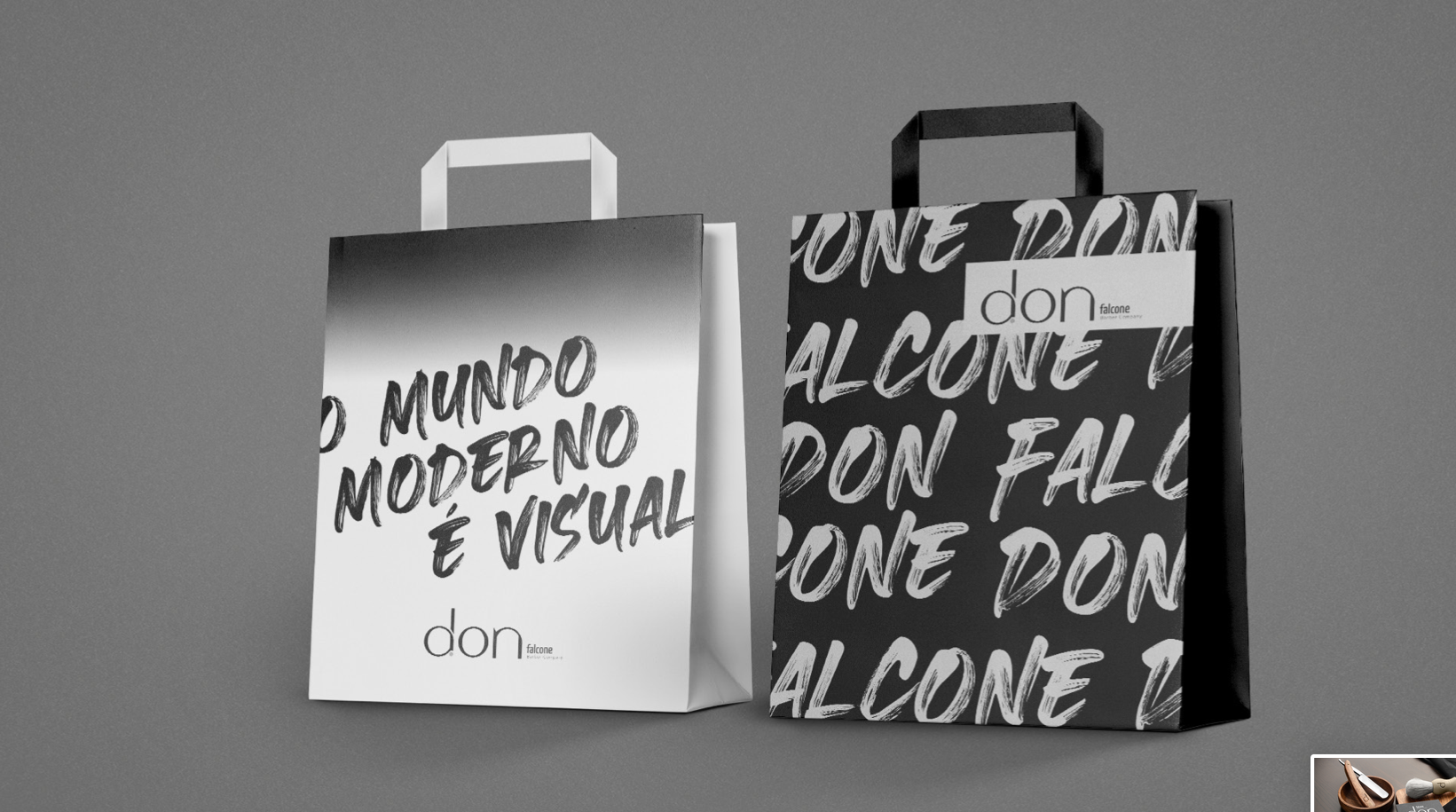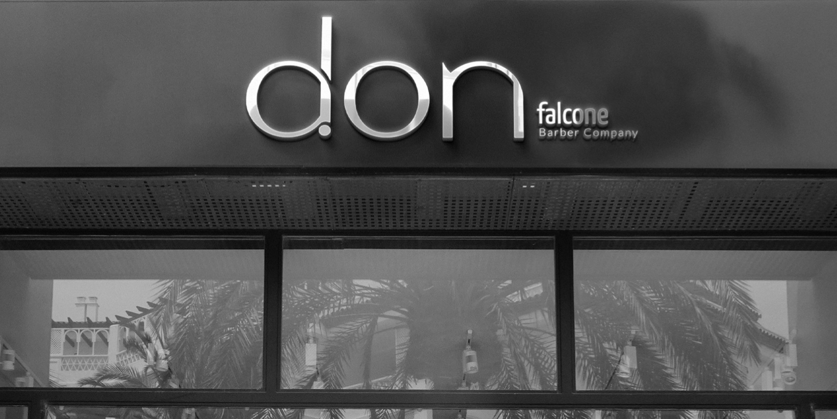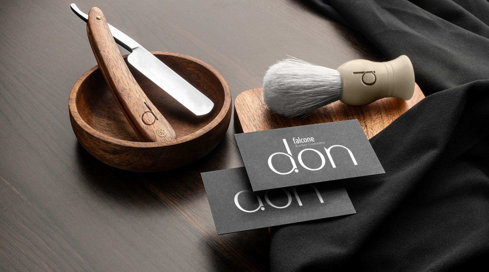 A nova marca da Don Falcone é inspirada nos acessórios do barbeiro, trazendo a proximidadecom o cotidiano e os símbolos da profissão. A letra D, destaque da logomarca, traz a silhueta da haste de uma tesoura, com extremidades que transitam entre o orgânico e o geométrico. Essas escolhas se complementam em uma nova marca clean e moderna, com detalhes sinuosos, que agrega traços de vigor e agilidade.